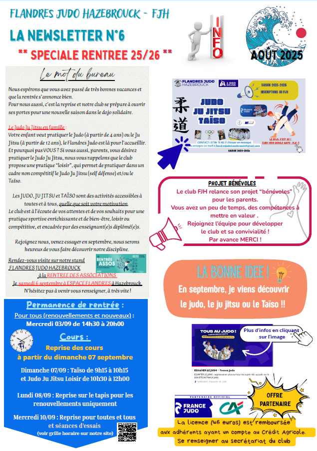 Régulièrement ,consultez notre newsletter pour connaître notre actualité FLANDRES JUDO HAZEBROUCK