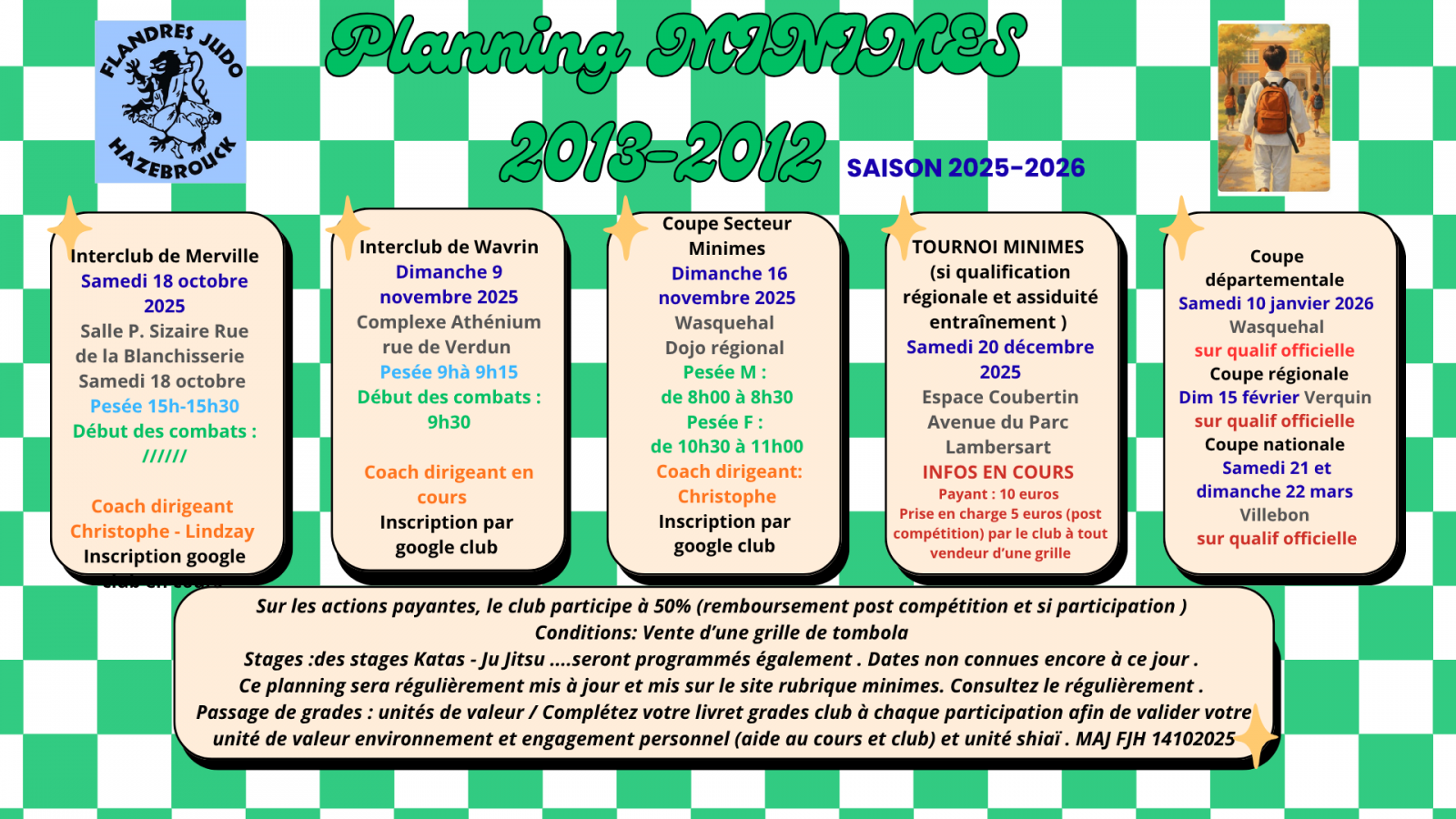 | dim 19/01 | Stage compétiteurs | benjamins , minimes | sur convocation du club |