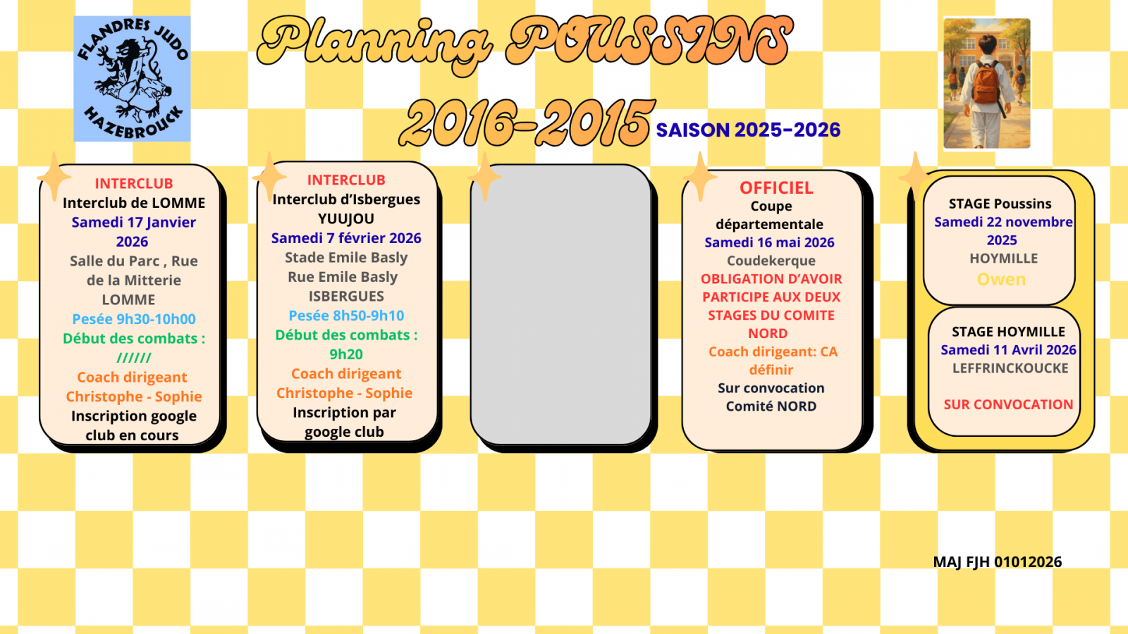 Si participation aux deux stages , sélection à la coupe départementale : Samedi 16 mai 2026 (Coudekerque)